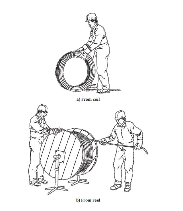 - For reeled ropes: Use a turntable for direct payout. For shorter lengths, release the outer end and roll the coil along the ground.