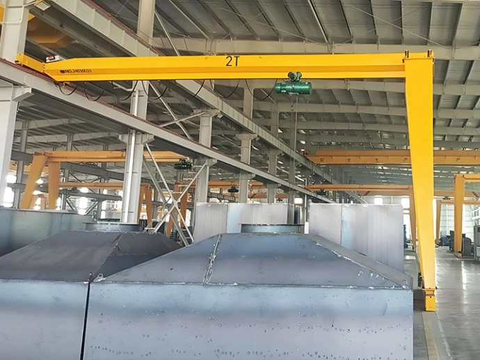 The BMH semi-gantry crane features a semi-gantry structure with one side fixed to a column or wall and the other side traveling along a rail. This design combines the advantages of overhead cranes and gantry cranes, making it particularly suitable for mixed-operation scenarios where one side is adjacent to a wall or column and the other side needs to cover an outdoor area. With high space utilization, strong rail-spanning capability, and flexible installation, this crane efficiently handles continuous material transfer from indoor to outdoor areas.