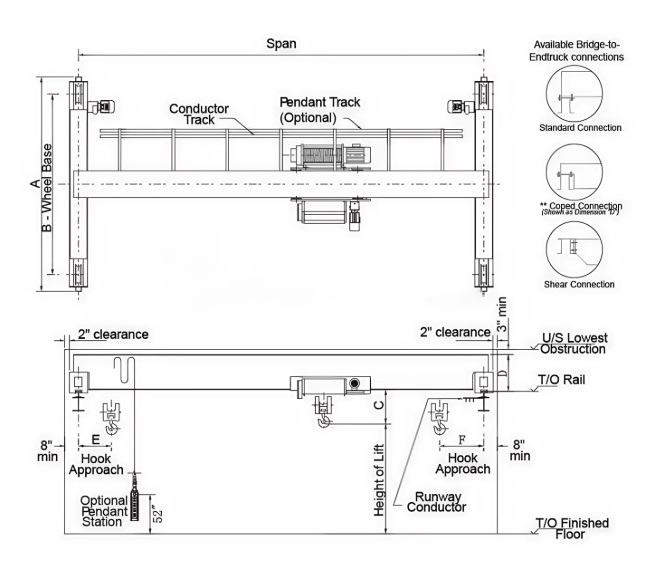 Optimized box-type girder structure reduces weight by 25%–30% compared to traditional cranes, minimizing structural load on the building.