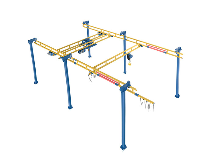 The KBK flexible crane system is a lightweight lifting solution based on standardized modular components. Utilizing an overhead track suspension structure, it can be flexibly configured into linear, curved, or circular transport paths according to spatial layouts. Comprising tracks, trolleys, suspension devices, and electrical control units, the system features low weight, fast installation, and high scalability, making it suitable for precise handling of small to medium loads, material transfer on assembly lines, and multi-station collaborative operations.