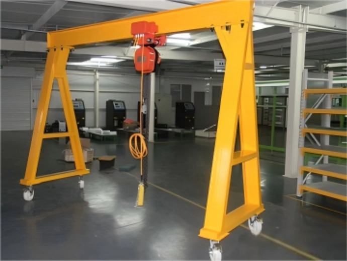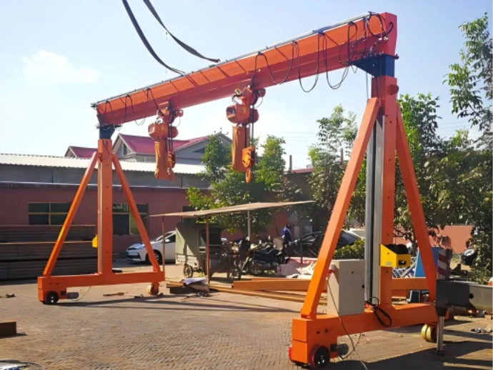 The small portable gantry crane is a lightweight lifting device specifically designed for on-site operations. Constructed with modular aluminum alloy or high-strength steel, it features low weight, easy assembly/disassembly, and flexible mobility. Requiring no complex foundations or permanent installation, it can be rapidly deployed in workshops, warehouses, construction sites, or temporary work areas. Ideal for small to medium equipment installation, material handling, and maintenance tasks, this crane serves as an efficient tool for enhancing on-site operational productivity.
